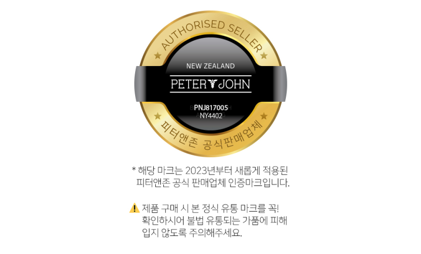 > 가격이슈 발생 및 인증마크 미 부착 확인시, 피터앤존 1개월간 공급중단