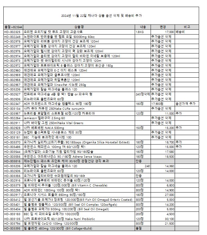 오아시스 상품옵션 추가금액이 0원으로 보이는 상품을 수정하였습니다.