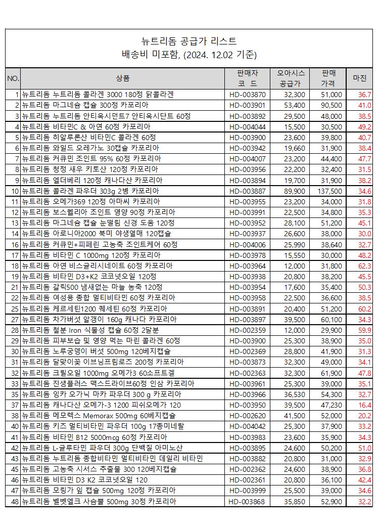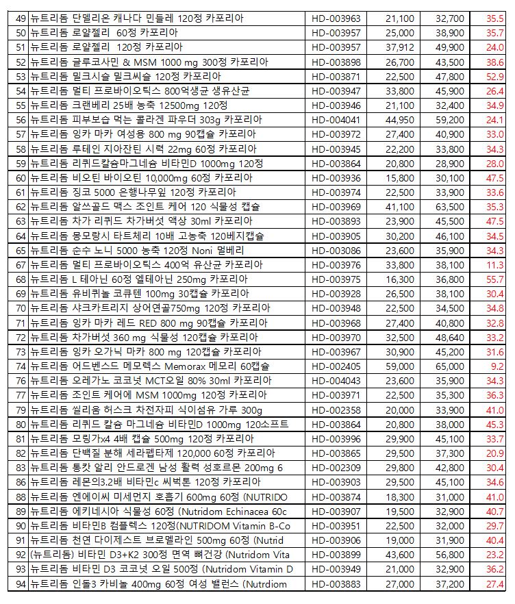 뉴트리돔 공급가격 공지 페이지 정보 작성자 나누리솔루션 댓글 0건 조회 1,416회 작성일 24-12-11 21:05 본문 뉴트리돔 공급가격 및 마진을 공개합니다. ^*^ 목록 답변 이전글오아시스 전체 공지 25.01.03 다음글뉴질랜드 상품공지 20241209 품절상품 24.12.09 댓글목록 댓글목록 등록된 댓글이 없습니다.